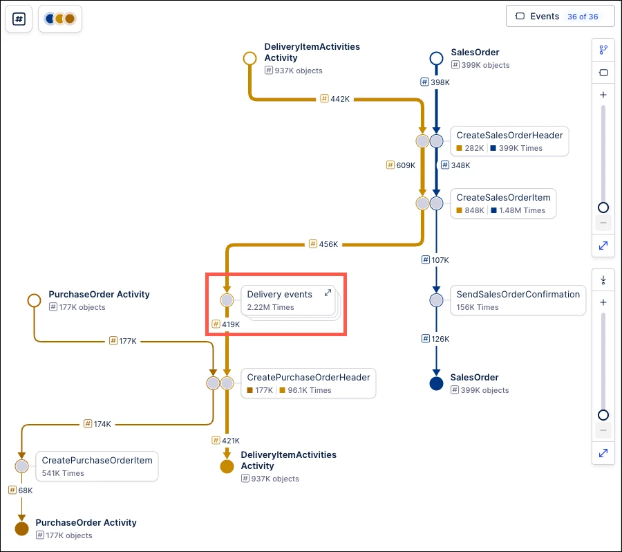Users of Process Explorer and Variant Explorer can now create custom groups of activities or events in the process graph. This simplifies the graph, making it easier to focus on other portions of the process or visualize processes by phases.